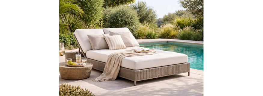Les lits de jardin, aussi appelés sunbeds, sont une invitation au lâcher-prise en plein air. À mi-chemin entre le transat et le lit, ils offrent un espace généreux pour s’allonger, lire, rêver ou simplement profiter du soleil. Conçus pour allier confort et esthétisme, ils transforment terrasses, jardins et bords de piscine en véritables lieux de détente. Seul ou à deux, le sunbed devient rapidement le cœur de vos moments de relaxation, où le temps semble suspendu.