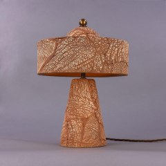 Grande lampe en céramique et abat-jour en tissu2 Couleurs: Rose ou MoutardeFabriquée à la main en IrlandeVoir l'ensemble du catalogue luminaires Mullan