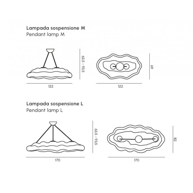 Nefos: une suspension lumineuse en forme de nuage. Deux tailles pour usage intérieur et extérieur.