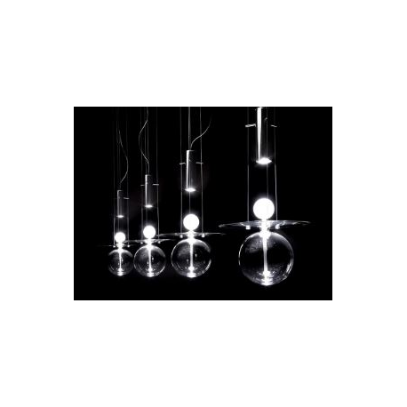 Dimensions: Diamètre sphère: 26 cm, Hauteur sphère: 28 cm, Longueur corps alu: 15,50 cm, Longueur totale de la suspension: de 150 à 200 cm