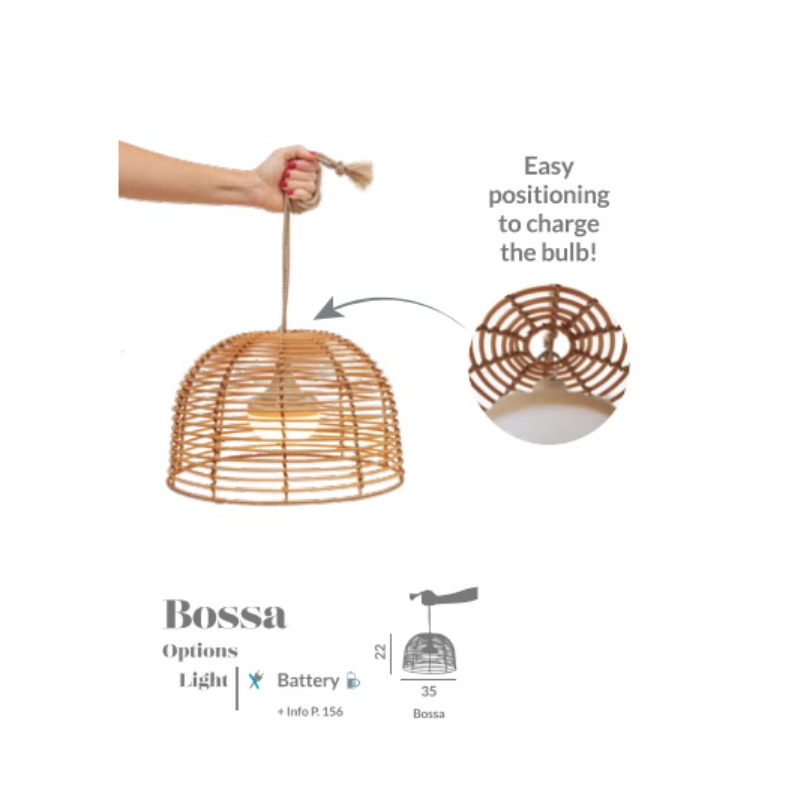 La suspension Bossa est livrée avec une ampoule led rechargeable par câble micro USB.Destinataire :