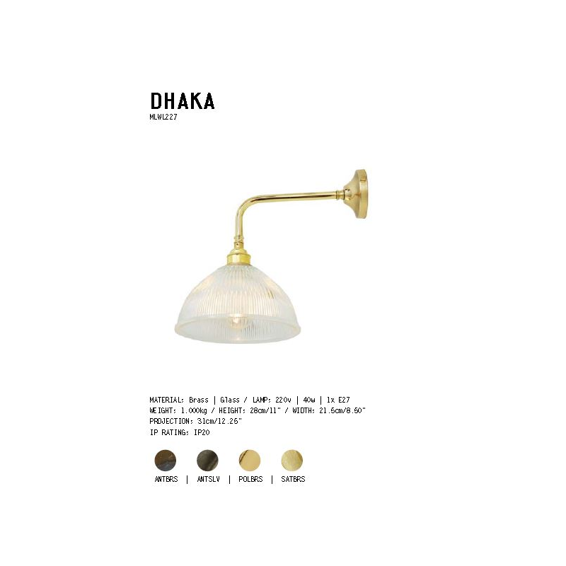 L’applique murale industrielle Dhaka est conçue à partir d’un abat-jour en verre strié qui réfracte la lumière et la fait miroiter, produisant ainsi un éclairage uniforme et chaleureux, sans éblouir. Source de lumière tamisée, elle convient à tout intérieur minimaliste, industriel ou même plus traditionnel.