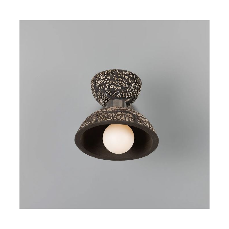 Applique composée de deux dômes en céramique lui conférant un profil anstrait et moderne.Destinataire :