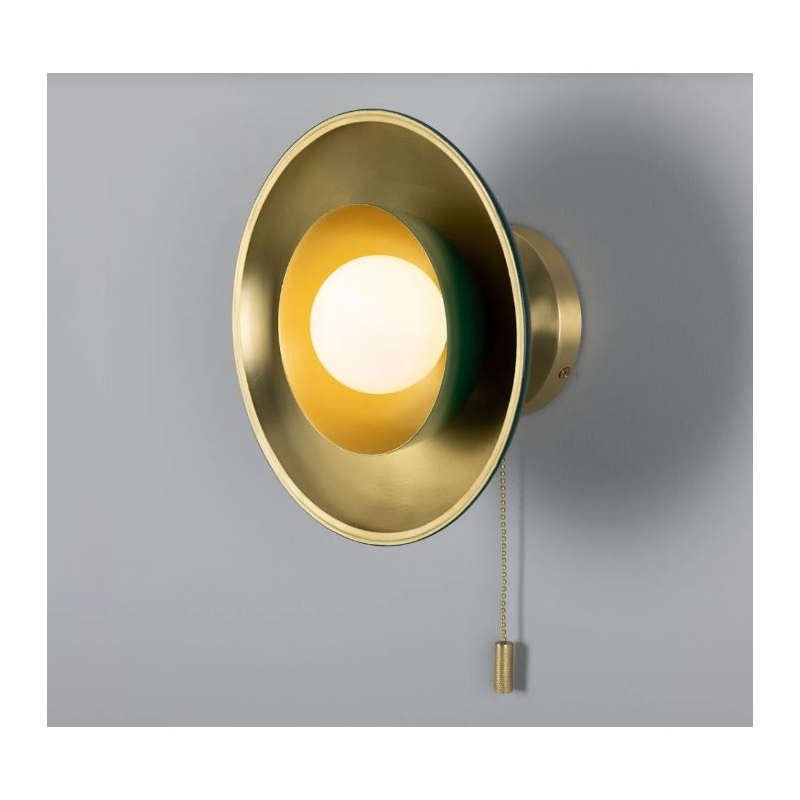 L'applique Marrakech présente un petit globe en verre opale niché entre deux abats jour coubés en laiton.Destinataire :