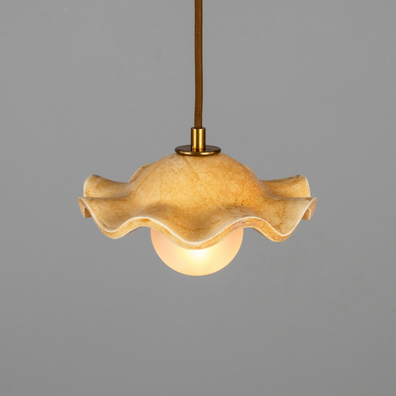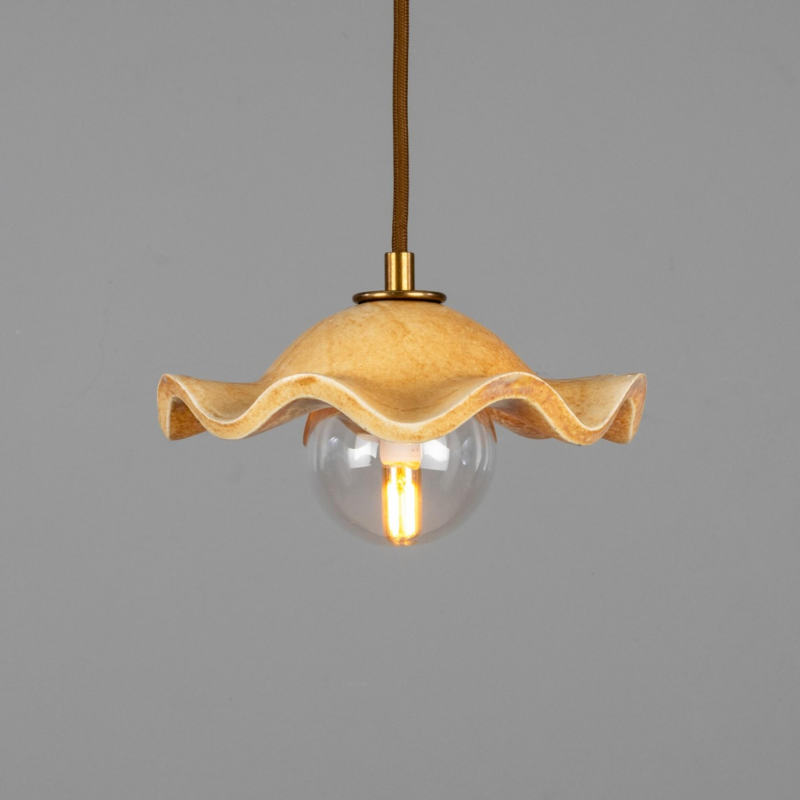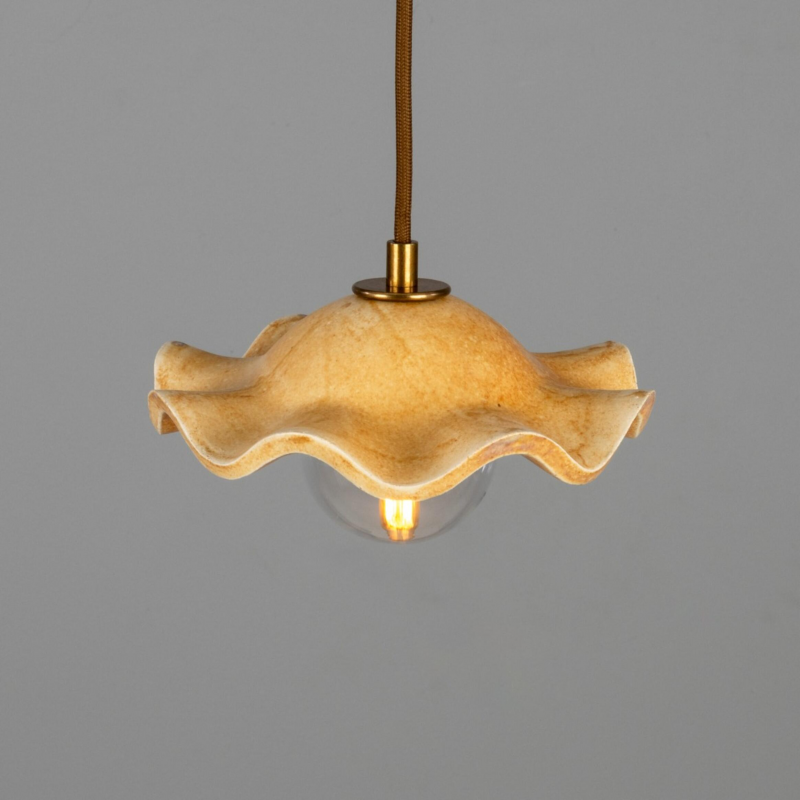 La suspension Rivale présente une forme sculpturale en céramique, aux contours délicatement ondulés, sublimée par une finition oatstone aux tonalités chaleureuses.