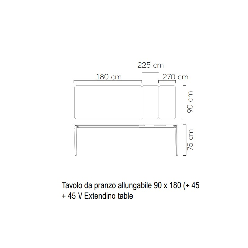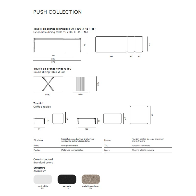 Table d'extérieur allongeable en aluminium et céramique Design Push