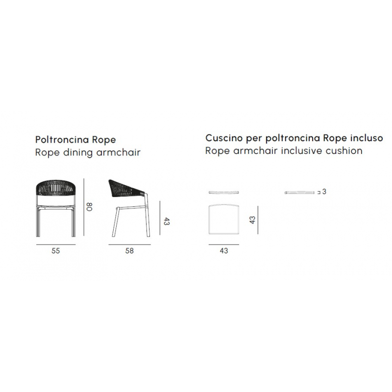 Assise en corde: Textilene® et coussin avec boutons-pression.