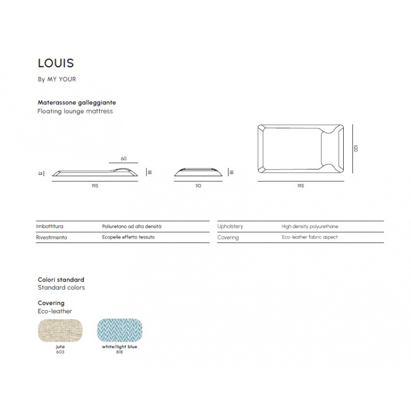 Fabriqué en mousse de polyuréthane haute densité et recouvert d'éco-cuir effet textile, le coussin flottant Louis résiste aux intempéries et aux UV.