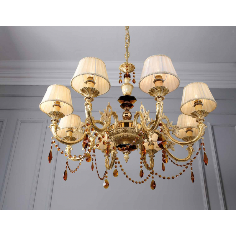 Lustre chandelier en laiton doré à la feuille d'or et cristal pour Hôtel ou Château Design Petra 8 LumièresDestinataire :