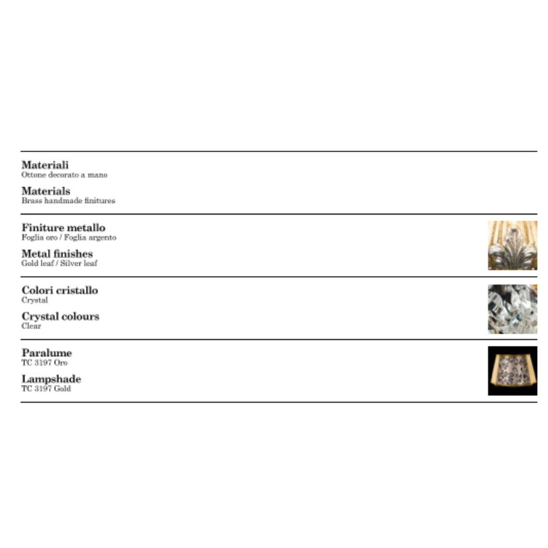 Lustre chandelier en Laiton doré aux feuilles d'or et d'argent, et cristal pour hôtel ou château Design Sonia 8 Lumières